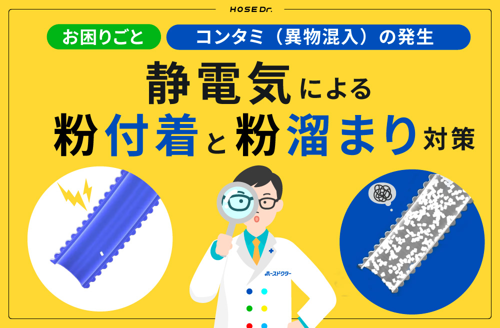 粉粒体搬送ホースの異物混入防止と製品の品質向上に効果あり!静電気によるホース内の粉付着・継手の粉溜まり対策を徹底解説