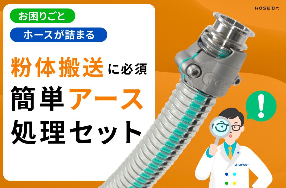 粉粒体搬送では、ホースの中でホース内面と流体が擦れ合うことで静電気が発生します。この静電気が帯電したまま放置されると、ホース内部に粉粒体が付着して搬送が不安定になり、詰まりや製品の品質のばらつきにつながることがあります。 […]